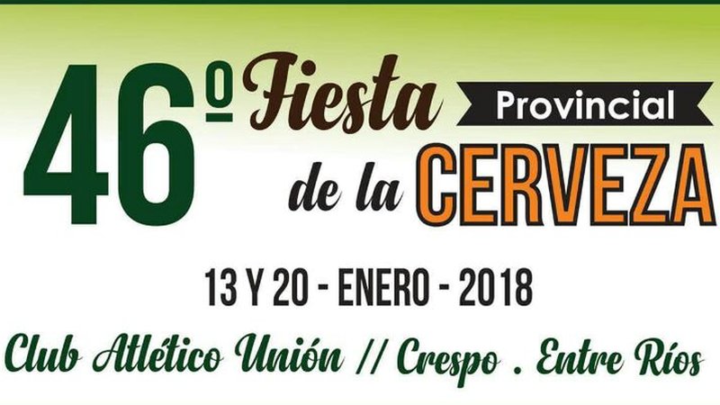 La 46ª edición de la Fiesta Provincial de la Cerveza en Crespo se realizará los días 13 y 20 de enero de 2018 en el Club Atlético Unión.