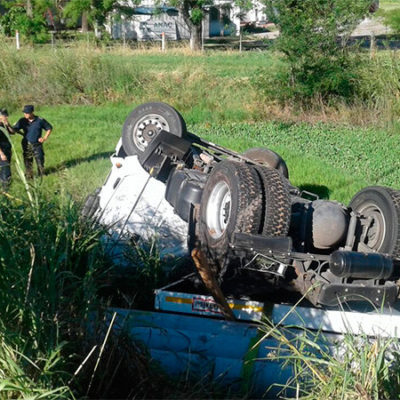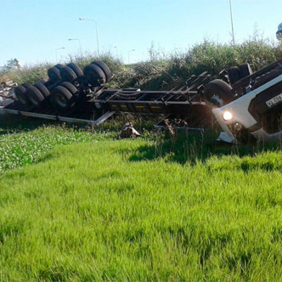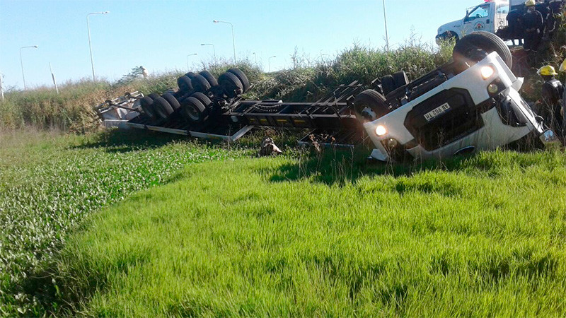 Un camión volcó en Ruta 11, frente a Victoria. El chofer del transporte murió al quedar atrapado.