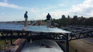 Esta mañana comenzaron a colocar el techo de los dos nuevos vagones que se convertirán en la segunda concesión gastronómica dentro del Paseo de los Trenes. En el cuerpo de baños y la cocina proyectadas sólo faltan detalles y resta terminar algunos trabajos de carpintería.