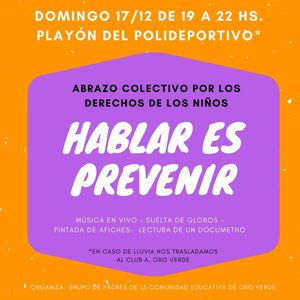 La actividad será el domingo 17 de diciembre, de 19 a 23 en el playón del Polideportivo Municipal. Se leerá un documento, se hará una suelta de globos, se pintarán afiches con mensajes y tocarán músicos locales.