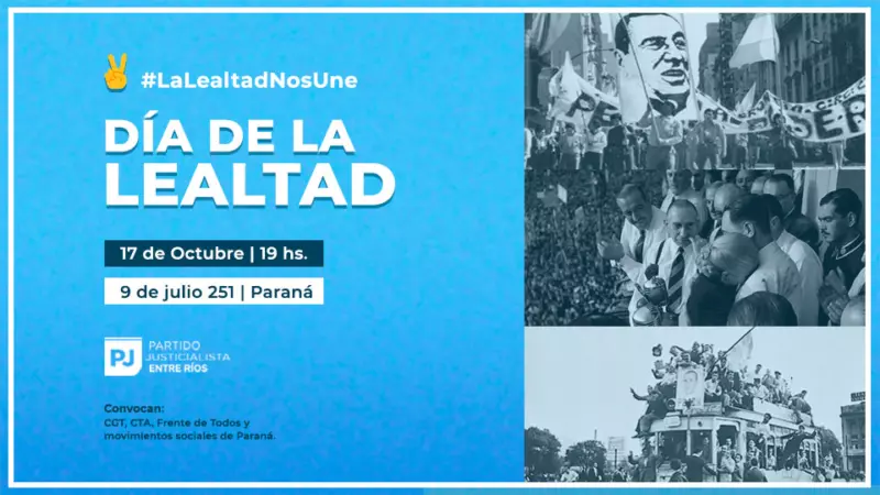 En esa fecha, el peronismo celebra el Día de la Lealtad, en homenaje a aquella movilización popular inédita que puso a los trabajadores y trabajadoras de la Patria como columna vertebral de un movimiento que transformó para siempre la realidad política y social de nuestro país. Por ello, el Partido Justicialista, la CTA, CGT, el Frente de Todos y movimientos sociales de Paraná, realizarán un acto central el próximo lunes 17 de octubre, a partir de las 19:00 hs, en la sede del PJ provincial, ubicada en calle 9 de julio 251.