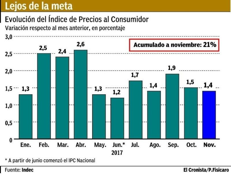 La inflación de 2017 cerró en 25%, ocho puntos por encima de la meta oficial