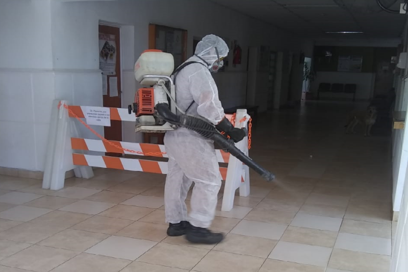 Como parte del plan integral de desinfección que viene llevando adelante el Municipio de Oro Verde, ante la emergencia sanitaria por el coronavirus, se realizó este la desinfección del Centro de Salud Luis Armando Gianotti y la Sala de Primeros Auxilios Crisólogo Larralde de barrio El Triangular.